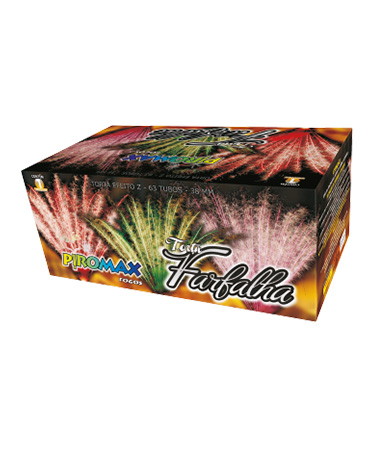 Torta em W com 135 tubos ¾” efeitos diversos. Caixa com 01 unidade Duração: 15 segundos (Tempo Aproximado)