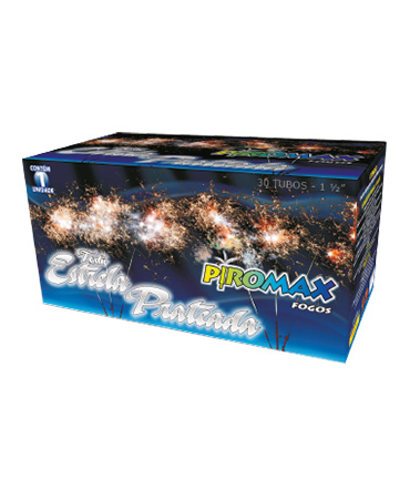 Torta em w com 30 tubos 1,5” efeito explosão luzes estrela prateada. Caixa com 01 unidade Duração: 25 segundos